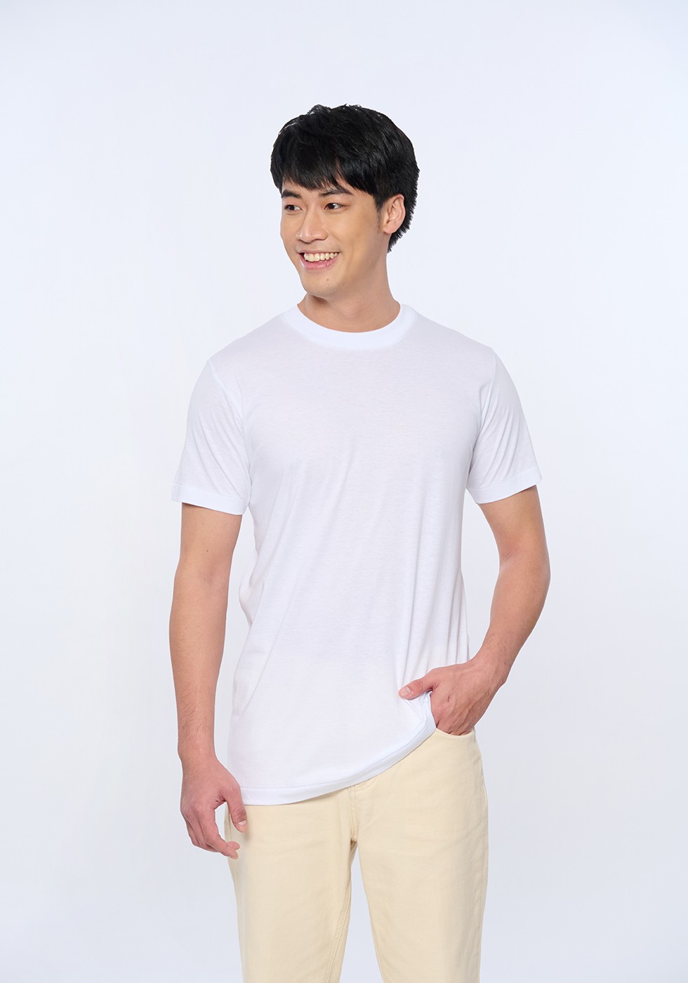 • ตราห่านคู่ เสื้อยืดคอกลม รุ่น ห่านคู่ Plus+ เนื้อผ้า Super Soft ยับยั้งแบคทีเรีย - สีขาว