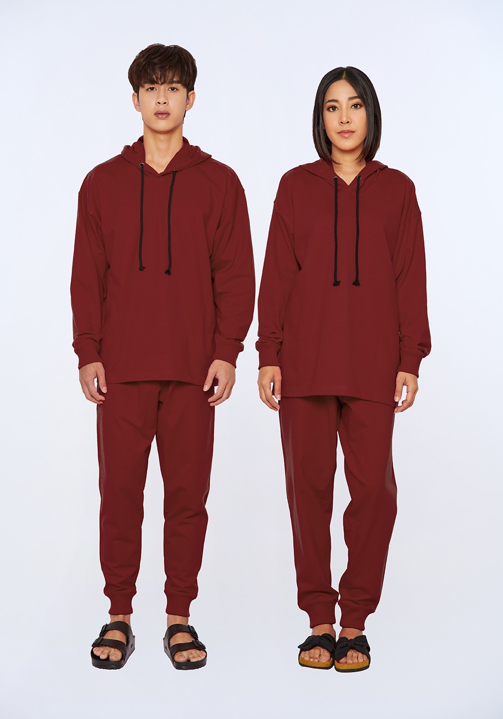 • ตราห่านคู่ เซตเสื้อแขนยาวมีฮู้ด กางเกงขายาว รุ่น ห่านคู่ PLUS+ - สีดำ