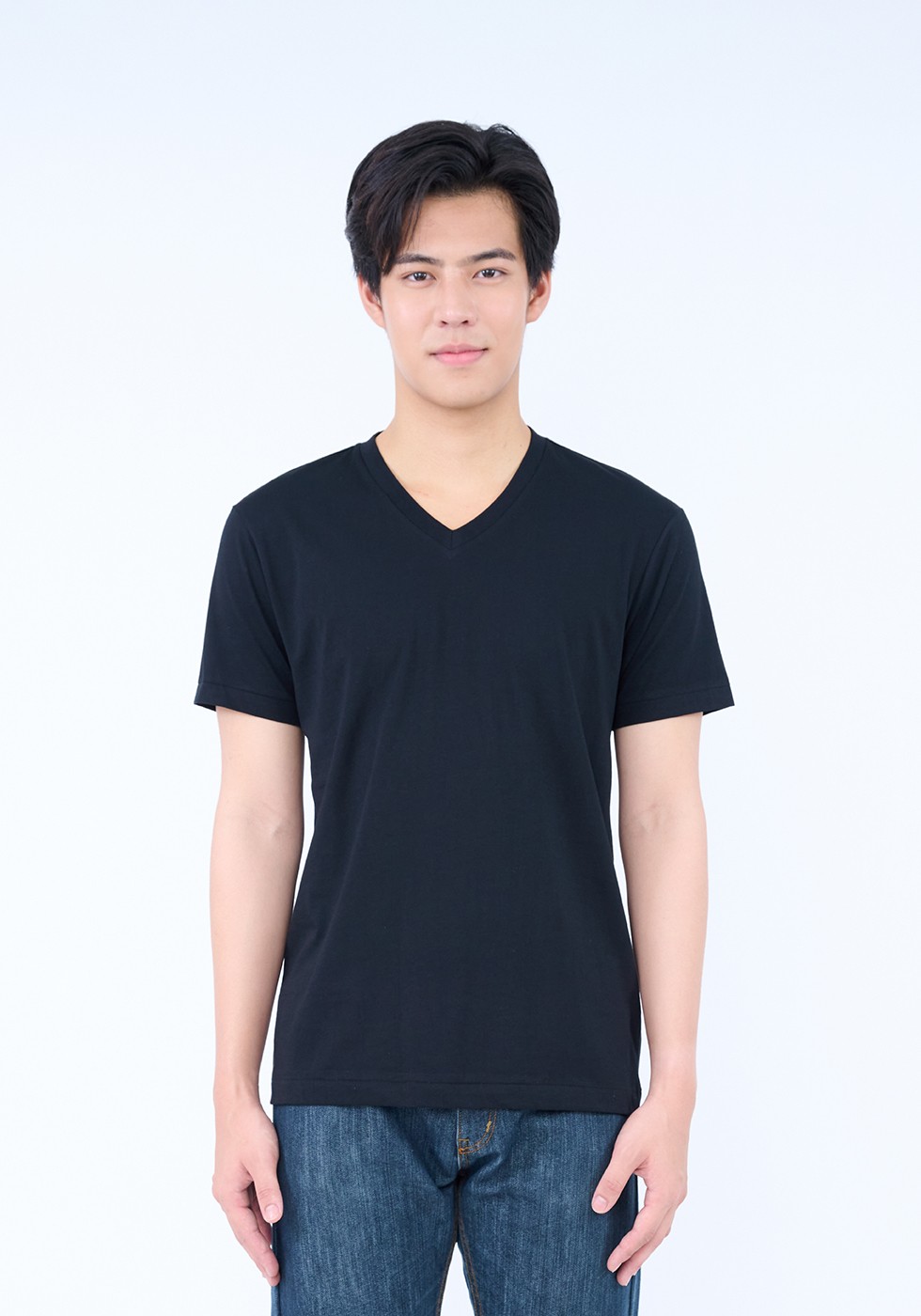 • ตราห่านคู่ เสื้อยืดคอวี รุ่น ห่านคู่ Plus+ เนื้อผ้า Super Soft ยับยั้งแบคทีเรีย - สีดำ