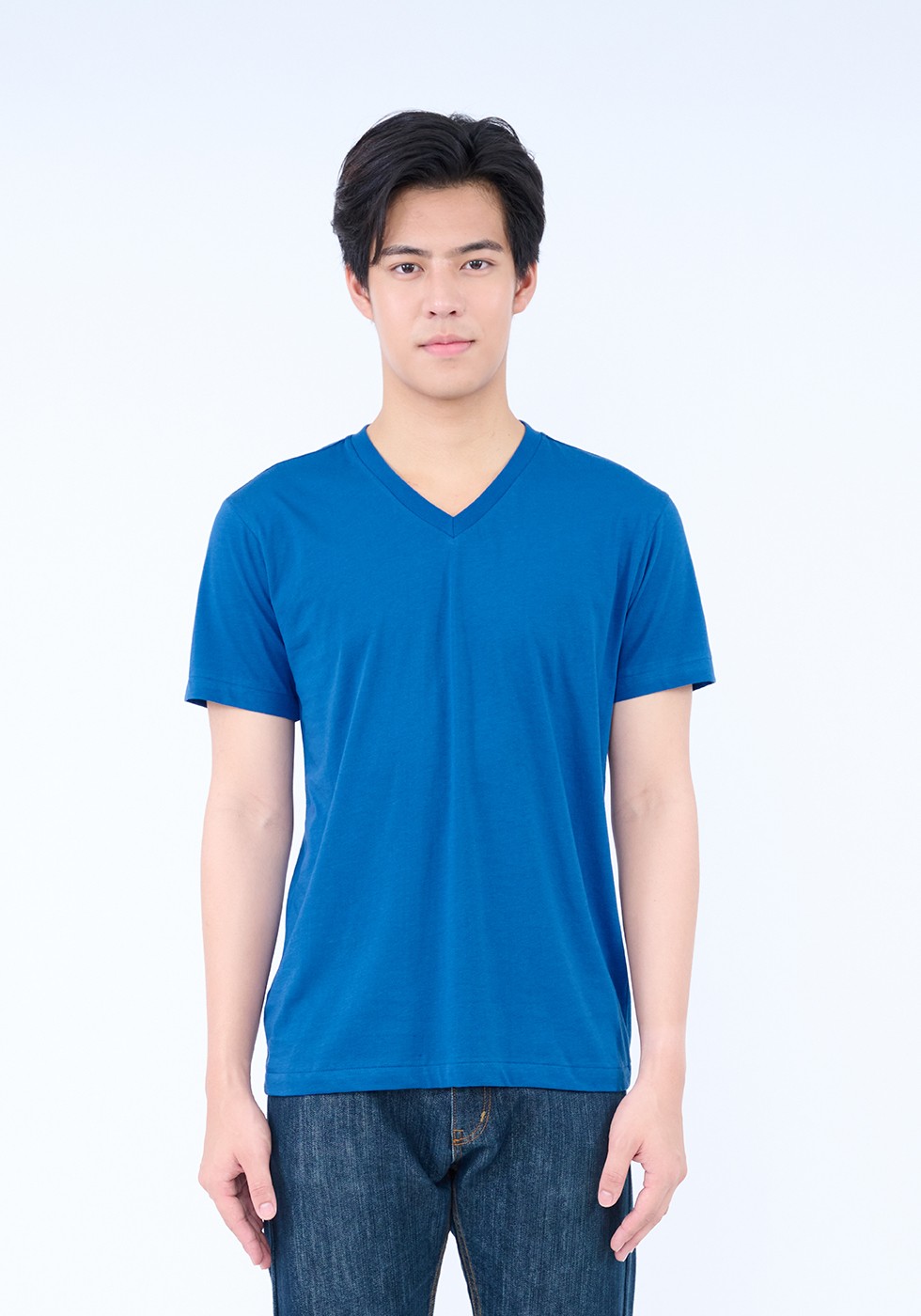 • ตราห่านคู่ เสื้อยืดคอวี รุ่น ห่านคู่ Plus+ เนื้อผ้า Super Soft ยับยั้งแบคทีเรีย - สีขาว