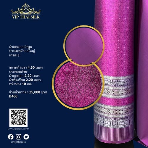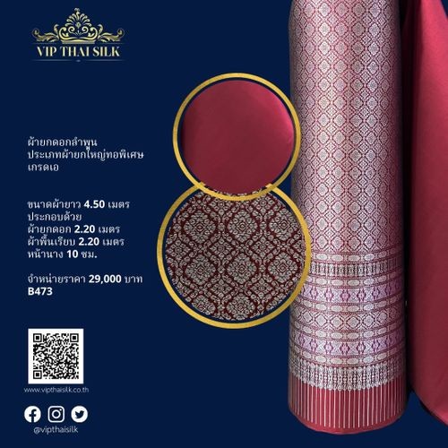 บริษัท วีไอพีไทยซิลค์ จำกัด คือหนึ่งในผู้ผลิตและจำหน่ายผ้าไหม รวมทั้งสินค้าจากภูมิปัญญาไทย โดยมีจุดเริ่มต้นจาก อิ๋ว (วราภรณ์) เจ้าของแบรนด์ วีไอพีไทยซิลค์ เกิดในครอบครัวของคนทอผ้าไหมที่ จ.สุรินทร์ จึงทำให้อิ๋วได้รู้จักและคลุกคลีกับผ้าไหมแท้มาเกือบทั้งชีวิต เราจึงเข้าใจถึงความปราณีต ละเมียดละไม ที่ช่างทอผ้าแต่ละคนรังสรรค์ให้เกิดผลงานที่มีเพียงชิ้นเดียวในโลก กว่า 30 ปี ที่อยู่ในแวดวงของผ้าไหมแท้ จนก่อให้เกิด วีไอพีไทยซิลค์ ผู้เชี่ยวชาญในเส้นไหมและผ้าไหมไทยทั่วทุกพื้นที่ของเมืองไทยที่ได้รับการคัดเลือกมาอย่างดี คัดสรรงานผ้าไหมแท้ 100% เกรด Super Premium!! ชิ้นเดียวในโลก