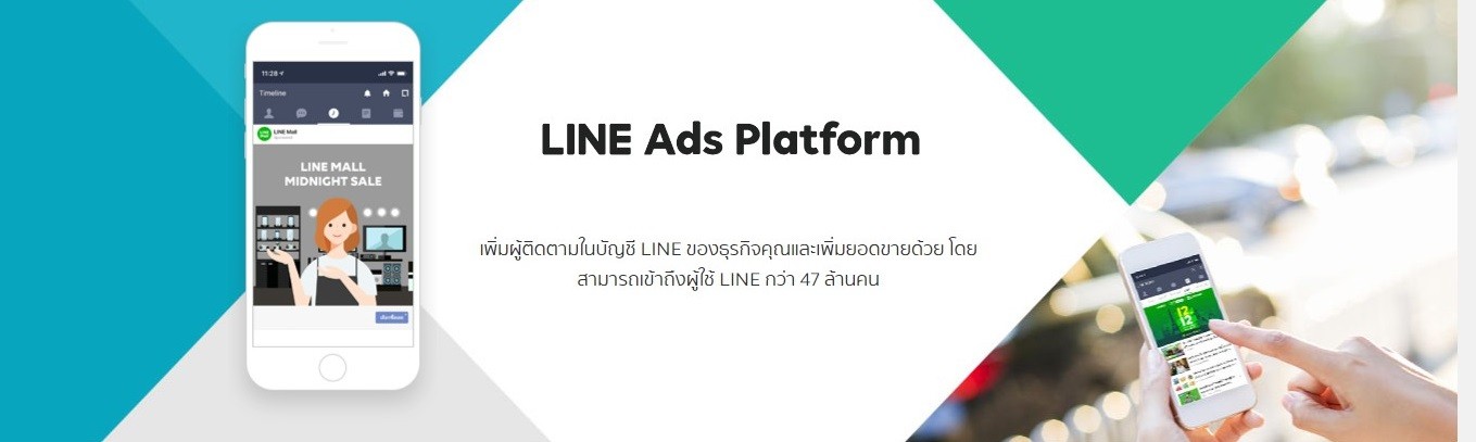 บริการของเรา :โฆษณาบน LINE เพิ่มโอกาสทางธุีกิจและปิดการขาย ด้วยช่องทางที่เข้าถึงลูกค้าโดยตรง และมีผู้ใช้งานจำนวนมาก สร้างธุรกิจให้เติบโต เข้าถึงผู้ใช้ LINE มากกว่า 47 ล้านคนในประเทศไทย