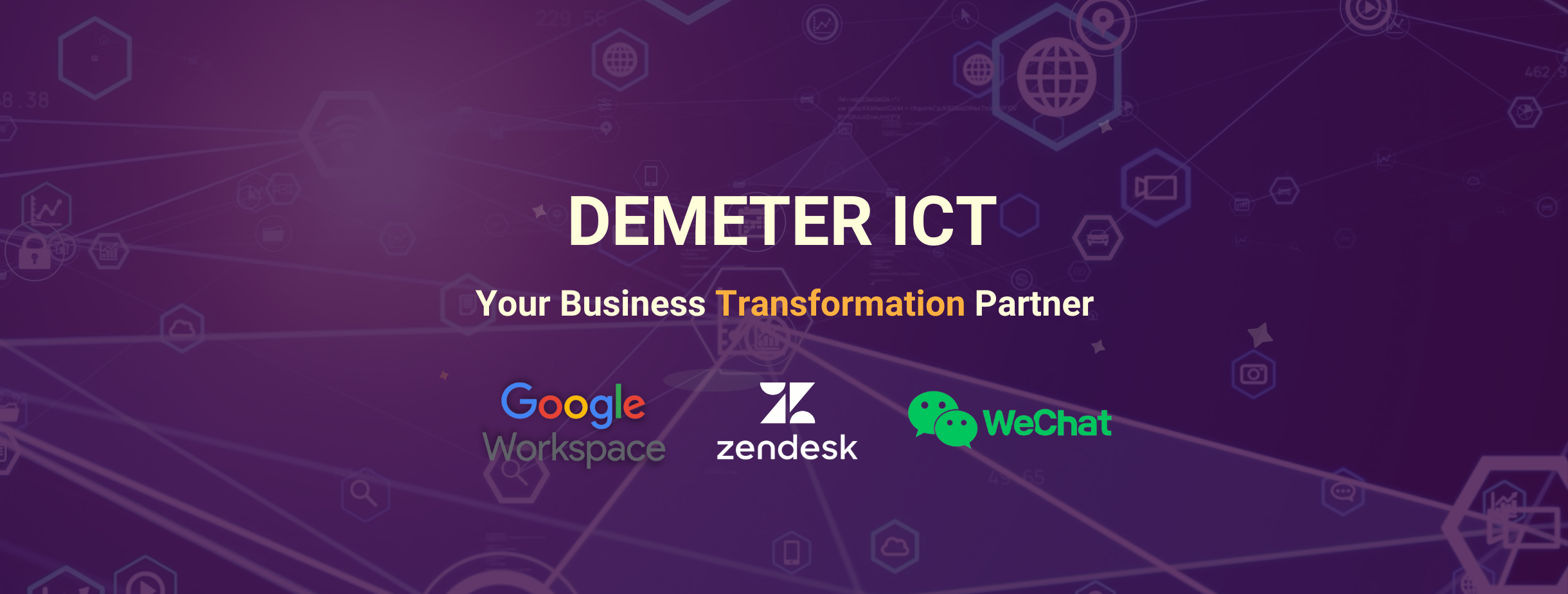 ประกอบธุรกิจการให้คำปรึกษาด้าน Business Transformation ด้วยเทคโนโลยีสารสนเทศบนระบบคลาวด์มาตั้งแต่ปี 2558 และเป็นผู้เชี่ยวชาญในด้านการทำ Workplace Transfomation, Change Management, Customer Experience Management และ China Digital Marketing ภายใต้วิสัยทัศน์ในการนำเทคโนโลยีที่มีประสิทธิภาพและเหมาะสมมาปรับใช้ให้เกิดประโยชน์สูงสุดต่อองค์กรทุกประเภทและทุกขนาด เพื่อเพิ่มขีดความสามารถทางการแข่งขันให้กับภาคธุรกิจและองค์กรลูกค้า บริษัท ดีมีเตอร์ ไอซีที จำกัด เป็นหนึ่งในพาร์ทเนอร์หลักของ Google Workspace และ Zendesk ในประเทศไทยอย่างเป็นทางการ