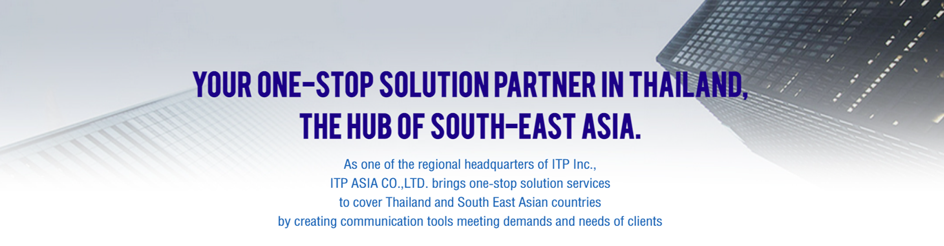 As one of the regional headquarters of ITP Inc., ITP ASIA CO.,LTD. brings one-stop solution services to cover Thailand and South East Asian countries by creating communication tools meeting demands and needs of clients