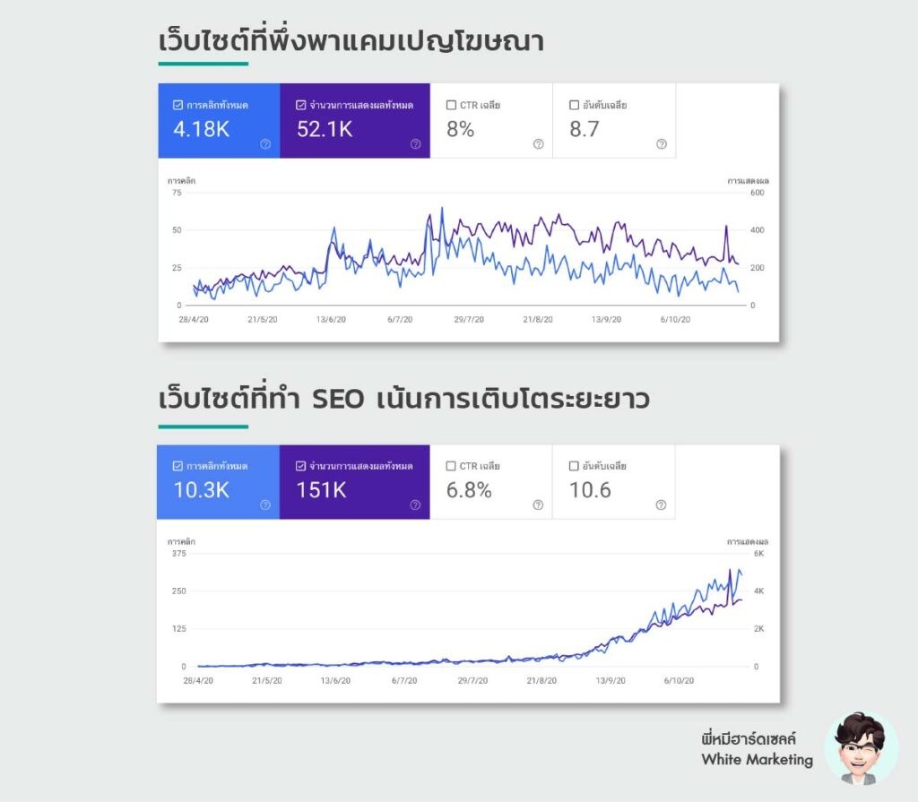 นั่นหมายความว่าคุณสามารถทำได้ทั้ง SEO และ SEM ขึ้นอยู่กับจุดประสงค์และความต้องการของธุรกิจ เช่น ถ้าคุณต้องการให้บริการหรือสินค้าเป็นที่รู้จักอย่างรวดเร็ว คุณอาจซื้อโฆษณาจากแหล่งต่างๆ เพื่อสร้าง Awareness พร้อมกับทำ SEO สายขาว ไปพร้อมๆ กัน เพื่อบ่มเพาะการเติบโตของ SEO ที่จะให้ผลลัพธ์ที่ดีในภายหลัง