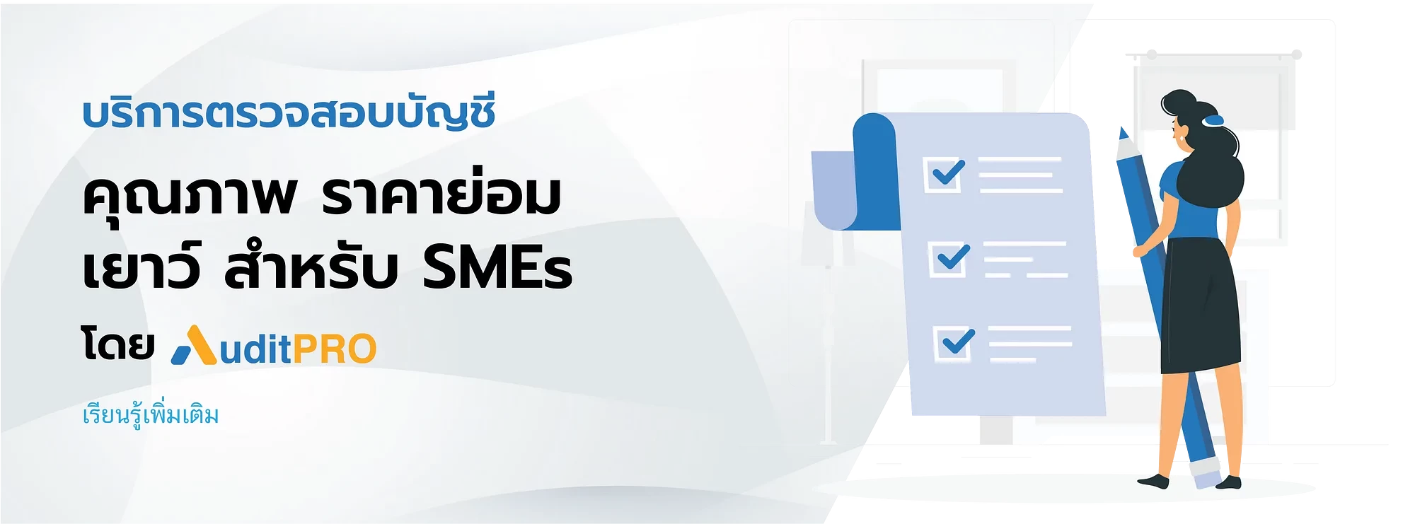 AuditPro ให้บริการตรวจสอบบัญชีตามมาตรฐานการสอบบัญชีไทยที่กำหนดโดยสภาวิชาชีพบัญชี บริษัทฯ มีผู้สอบบัญชีรับอนุญาตจำนวน 3 ท่าน ซึ่งมีประสบการณ์ทำงานทางด้านตรวจสอบบัญชีกับบริษัทตรวจสอบบัญชี Big4 และเคยตรวจสอบบริษัทหลายแห่งในหลายประเภทธุรกิจ
