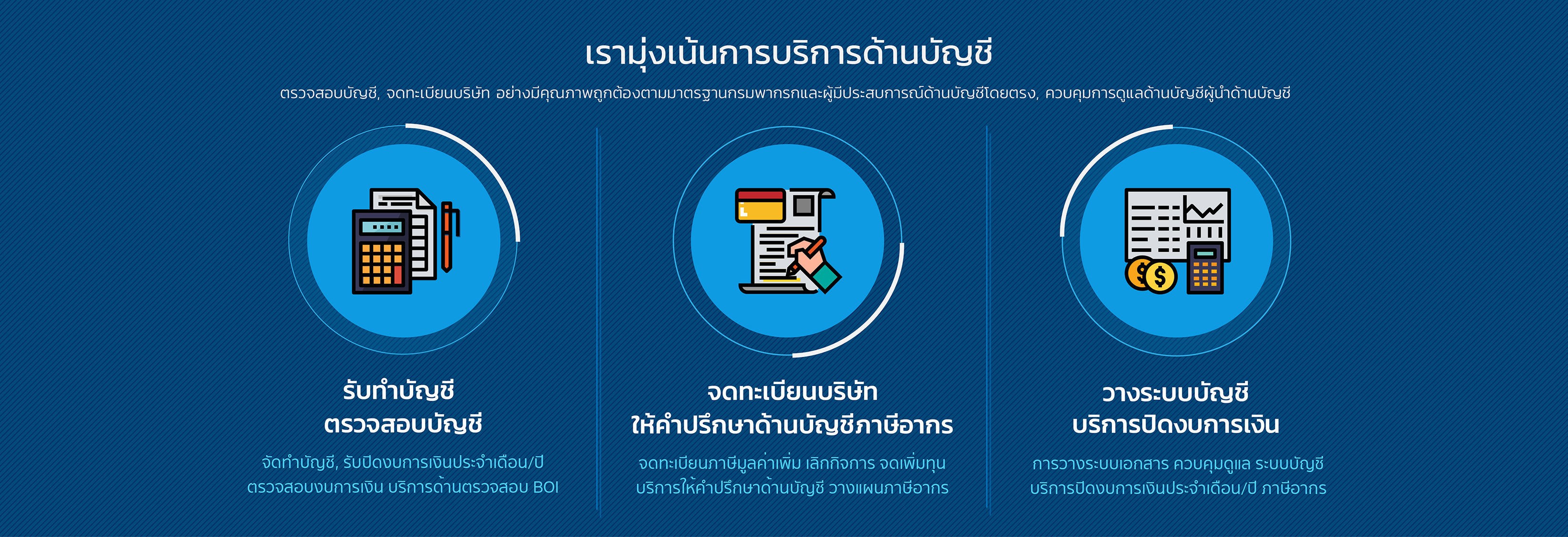 บริษัท รับทำบัญชี ชลบุรี, ระยอง, ภาษีอากร, ทำภาษีเงินได้บุคคลธรรมดาประจำปี, บริการ ปิดงบการเงิน ให้คำปรึกษาด้านบัญชีภาษีอากรจัดทำบัญชีรายปี, และ วางแผนภาษีอากร, บริการ รับทำเงินเดือน, บริการ ด้านประกันสังคม