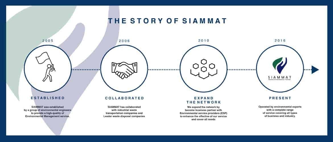 Siammat เป็นบริษัทที่ปรึกษาด้านสิ่งแวดล้อมที่ให้บริการด้านการจัดการสิ่งแวดล้อม โดยทีมงานที่มีประสบการณ์ในหลายธุรกิจ และมีความเชี่ยวชาญในด้านต่างๆ ครอบคลุมปัญหาสิ่งแวดล้อมในทุกมิติ เช่น ระบบบำบัดน้ำเสีย การออกแบบระบบบำบัดน้ำเสีย การให้คำปรึกษาด้านสิ่งแวดล้อม การกำจัดกากอุตสาหกรรม และการตรวจวัดคุณภาพสิ่งแวดล้อม